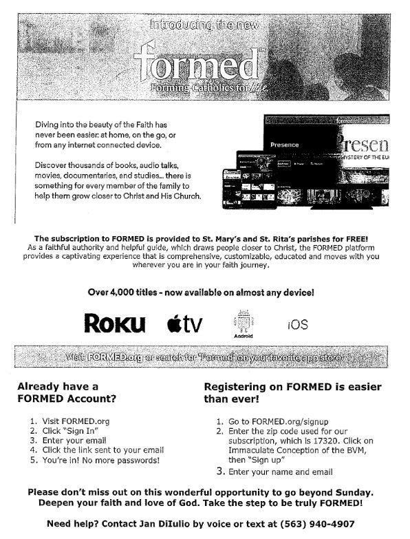 Headsets that connect to the church sound system are available in the foyer for those who would be able to hear the Mass better with assistance. Ask an Usher to assist with these.